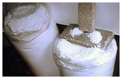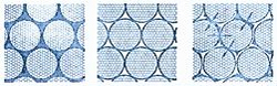 Todos los espacios entre las perlitas están ocupados por la matriz de mortero de cemento. Relleno incompleto de los intersticios. Buena resistencia por el efecto de arco de la matriz..